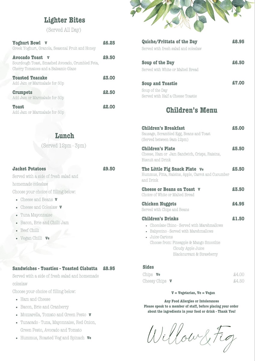 Located in Chipping Sodbury, the menu offers a variety of options suitable for breakfast, light meals, and casual dining. The selection includes a range of hot drinks, sandwiches, breakfast plates, and children's meals.